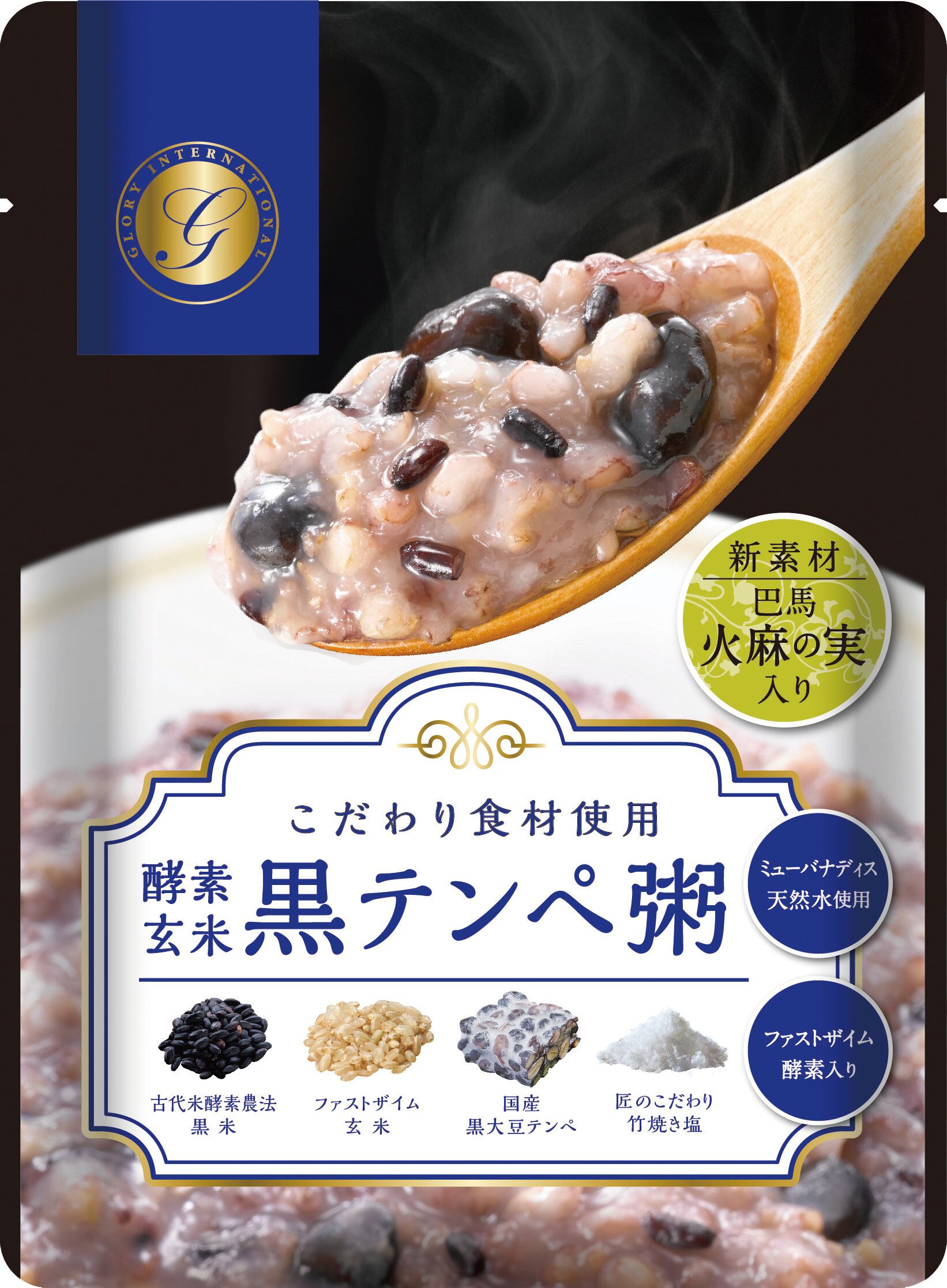玄米(香川県)、黒大豆テンペ、黒米(香川県)、火麻の実、竹焼き塩、ファストザイム酵素
